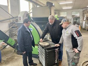 Viel Technik, viele große Säcke, Schafwolle, Heu, Stroh, etwas Staub und ein interessantes Konzept hat sich MdL Jörg Denninghoff bei einem Betriebsbesuch der Firma Taunus Pellets in Gemmerich ansehen können. Die Firmengründer Pierre von der Heidt und Rainer Kress empfingen Denninghoff und Carsten Göller (Vorsitzender der SPD-Kreistagsfraktion) direkt in der Produktionshalle. „Innovative Konzepte, regionale Produkte und Wertschöpfung vor Ort. Davon kann der Rhein-Lahn-Kreis nur profitieren“, sagte Denninghoff nach dem Termin in Gemmerich.
